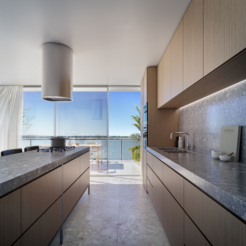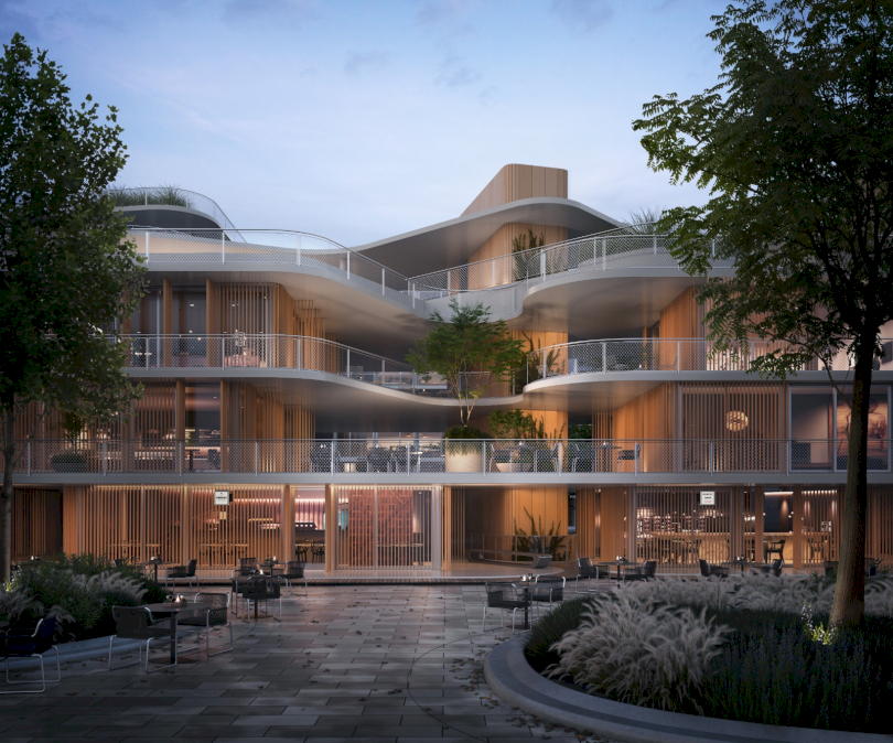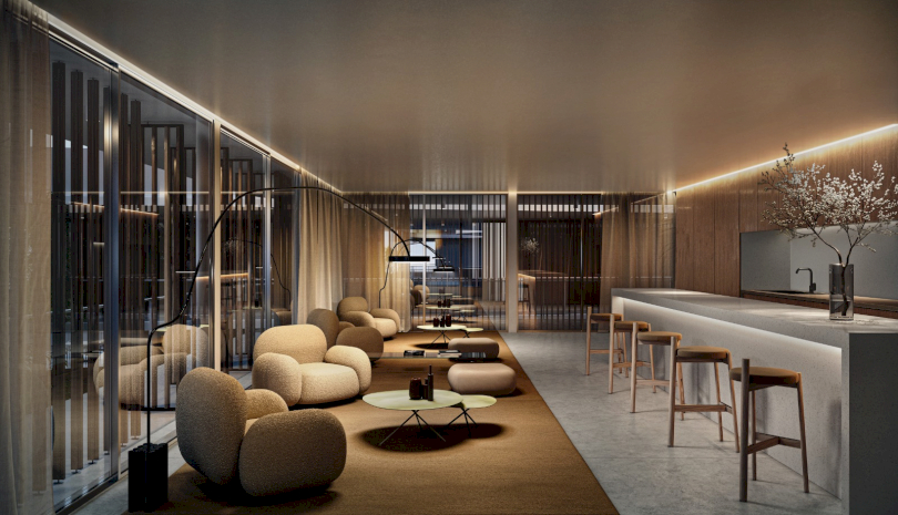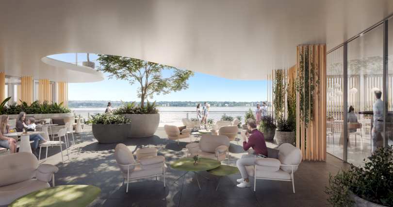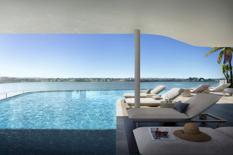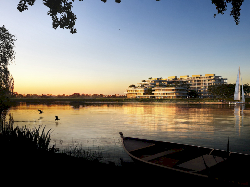 AORA son amenities frente al lago central.
